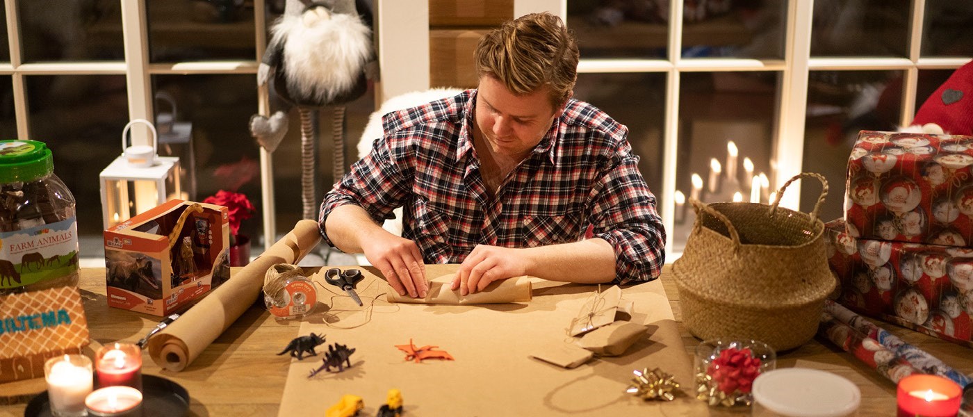 Pienten yllätysten lisäksi tarvitset tietysti kaikkea paketointiin sopivaa, kuten lahjapaperia, nauhoja sekä sakset. Katso myös, miten kätevät eväsleipäpussit taipuvat joulukalenterin luukuiksi!