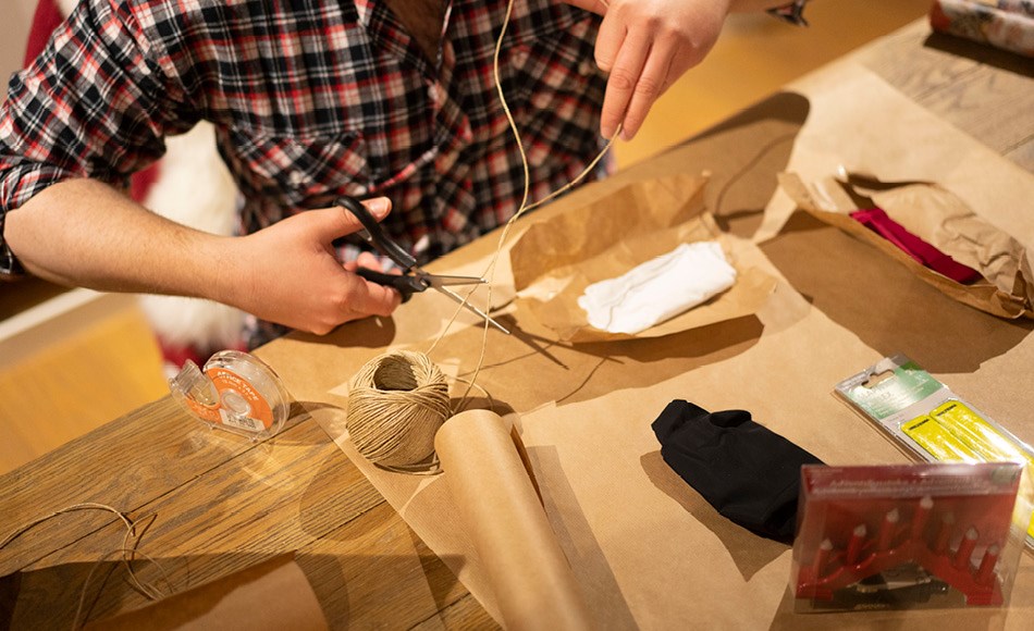 Pienten yllätysten lisäksi tarvitset tietysti kaikkea paketointiin sopivaa, kuten lahjapaperia, nauhoja sekä sakset. Katso myös, miten kätevät eväsleipäpussit taipuvat joulukalenterin luukuiksi!