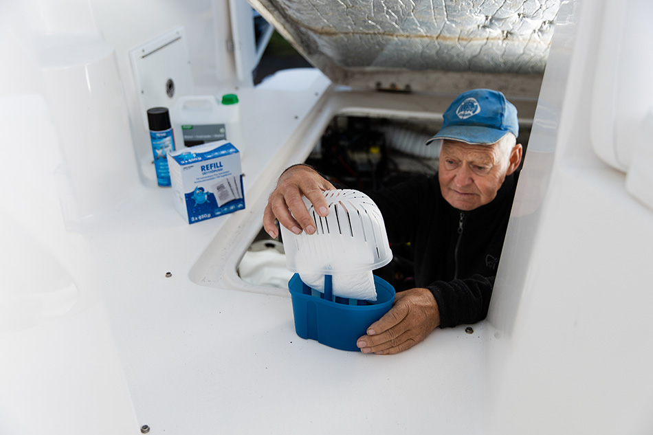 Muista tyhjentää kaikki säilytyksessä ollut ruoka ja juoma pois veneen jääkaapista ja kuiva-ainekaapeista. Näin mikään ei pilaannu, eikä esimerkiksi hiiriarmeija pääse villiintymään veneessä talvisäilytyksen aikana. Muista myös jättää vähintään yksi kosteudenpoistaja, jottei veneeseen synny kosteutta ja sen seurauksena hometta talven aikana.