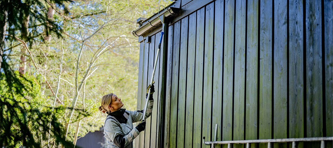 Rännit ovat yksi tärkeimmistä asioista, jotka kannattaa tarkistaa. Jos lehdet ja lika jäävät ränniin, ne voivat tukkia putket ja kerätä vettä. Tällöin vesi voi päästä valumaan talon seinää pitkin ja aiheuttaa kosteusvaurioita. Käytä esimerkiksi Bilteman kätevää ränninpuhdistajaa (88-464) teleskooppivarren (86-070) kanssa, niin et tarvitse nousta tikapuille puhdistustöihin. Rännit olisi hyvä tarkistaa vähintään kerran vuodessa. Jos pihallasi on paljon korkeita puita, tarkistus kannattaa tehdä kahdesti vuodessa.