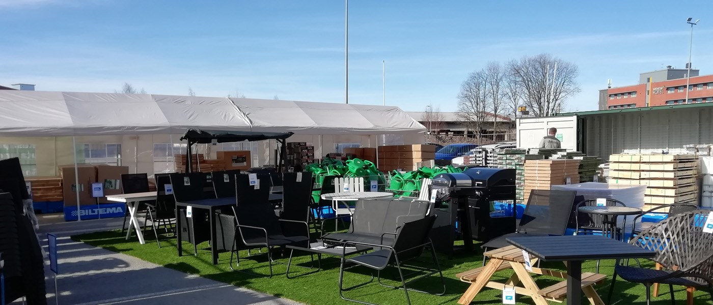 – Etenkin piha- ja puutarhatuotteiden kysyntä on kasvanut näin korona-aikaan. Koska emme luonnollisesti voi kasvattaa myymälöidemme kokoa, päätimme laajentaa niitä ulos, koska parkkialueilla on tilaa yllin kyllin. Isompien puutarhatuotteiden siirtäminen esille myymälän Kesäpihalle tuo tietysti lisätilaa muulle valikoimallemme myymälän sisällä. Ulkona asioimisessa on myös ajateltu koronaturvallisuutta, Bilteman projektipäällikkö Teemu Salminen avaa Kesäpiha-konseptin taustoja.